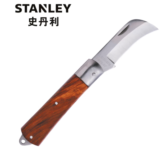 史丹利弯刃电工刀原木柄折叠电缆剥线刀电线剥皮刀 10-226-23