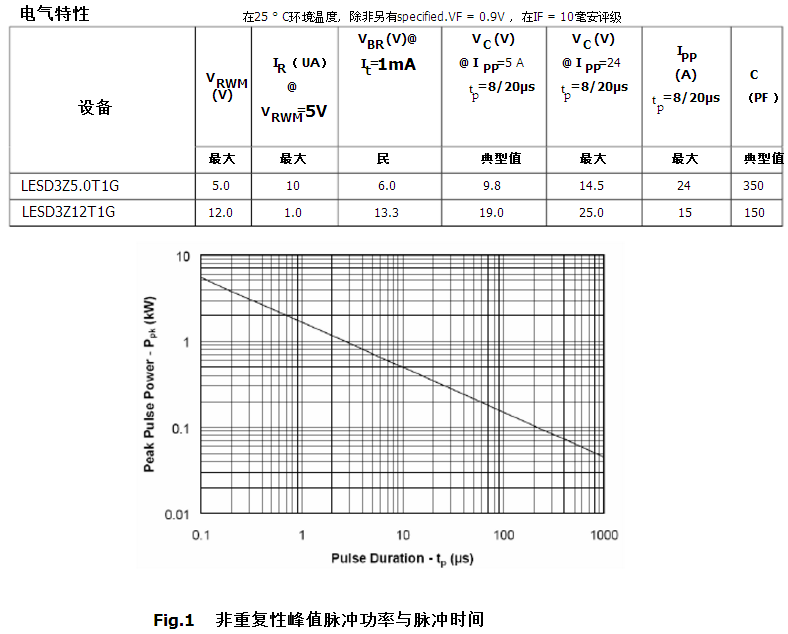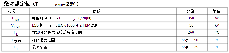 350瓦峰值脉冲功率( TP = 8 /20μS )T为数据线ransient保护