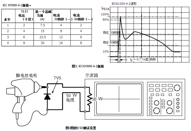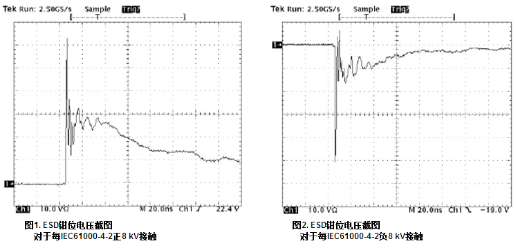ESD电压钳位对于敏感的电路元件是非常重要的,以限制电压,一个集成电路的ESD事件期间将暴露于到尽可能低的电压成为可能。该ESD钳位电压是在整个ESD保护二极管上的电压降按照IEC61000-4-2波形ESD事件。自从IEC61000-4-2被写成一个合格/不合格规格较大诸如蜂窝电话或膝上型计算机系统,它不在规范中明确规定如何指定钳位电压在设备级别。安森美半导体已经开发出一种方法检查整个ESD整个电压波形在ESD脉冲在时域中的保护二极管形式的示波器屏幕截图,其中可以发现在该数据表的所有的ESD保护二极管。欲了解更多关于安森美半导体是如何创造这些信息截图以及如何对其进行解释,请参考AND8307/D.