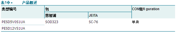 PESD5V0S1UA瞬态电压单向ESD保护抑制