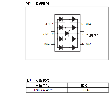 该USBLC6-4SC6是一款单芯片应用具体的离散致力于ESD保护高速接口,如USB2.0 ,以太网链接和视频线。其极低的线路电容保证了较高水平而不会影响信号完整性保护敏感芯片针对最严格的特点ESD冲击。