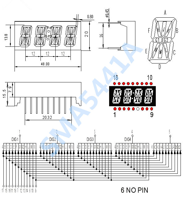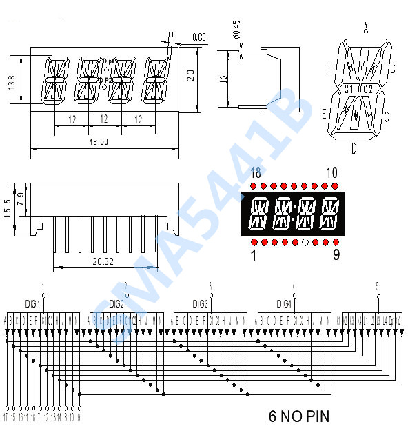 | 尺寸规格: 0.54英寸4位米字型 | ||||||||||||||||||