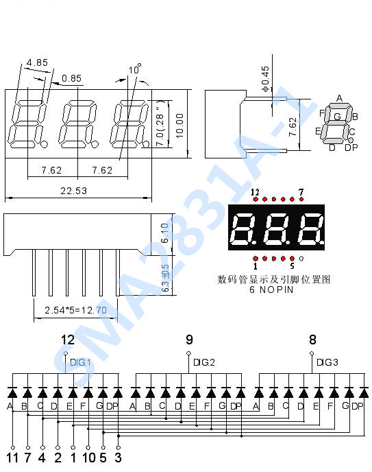 led数码管常用段数一般为7段有的另加一个小数点,还有一种 是类似于3位“+1”型。位数有半位,1,2,3,4,5,6,8 ,10位等等....,根据LED的接法不同分为共阴和共阳两类, 了解LED的这些特性,对编程是很重要的,因为不同类型的数 码管,除了它们的硬件电路有差异外,编程方法也是不同的。 共阴和共阳极数码管的内部电路,它们的发光原理是一样的, 只是它们的电源极性不同而已。颜色有红,绿,蓝,黄等几种 。led数码管广泛用于仪表,时钟,车站,家电等场合。选用 时要注意产品尺寸颜色,功耗,亮度,波长等。