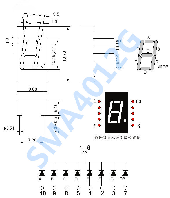 | 尺寸规格: 0.4英寸1位 | ||||||