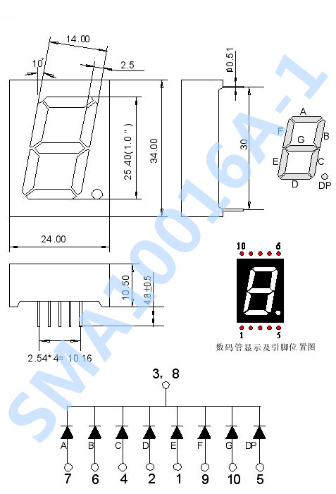 led数码管常用段数一般为7段有的另加一个小数点,还有一种 是类似于3位“+1”型。位数有半位,1,2,3,4,5,6,8, 10位等等....,根据LED的接法不同分为共阴和共阳两类,了 解LED的这些特性,对编程是很重要的,因为不同类型的数码 管,除了它们的硬件电路有差异外,编程方法也是不同的。共 阴和共阳极数码管的内部电路,它们的发光原理是一样的,只 是它们的电源极性不同而已。颜色有红,绿,蓝,黄等几种。 led数码管广泛用于仪表,时钟,车站,家电等场合。选用时 要注意产品尺寸颜色,功耗,亮度,波长等。 |