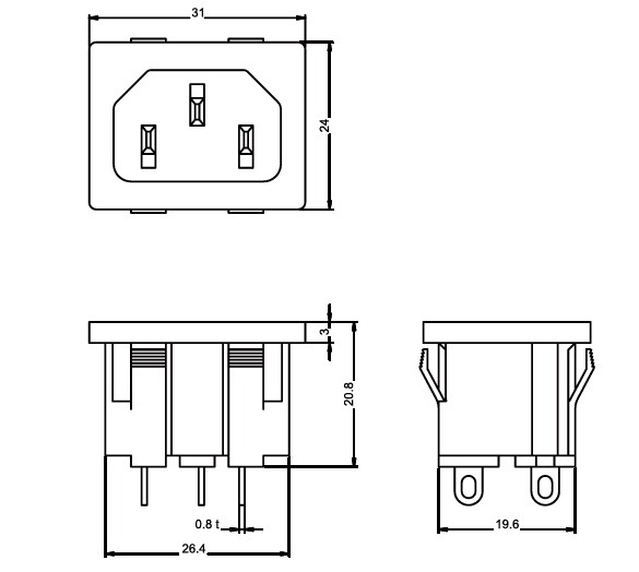 250V 10A 高品质电源座.外壳使用耐高温材料,适用高温焊接.脚不松动.