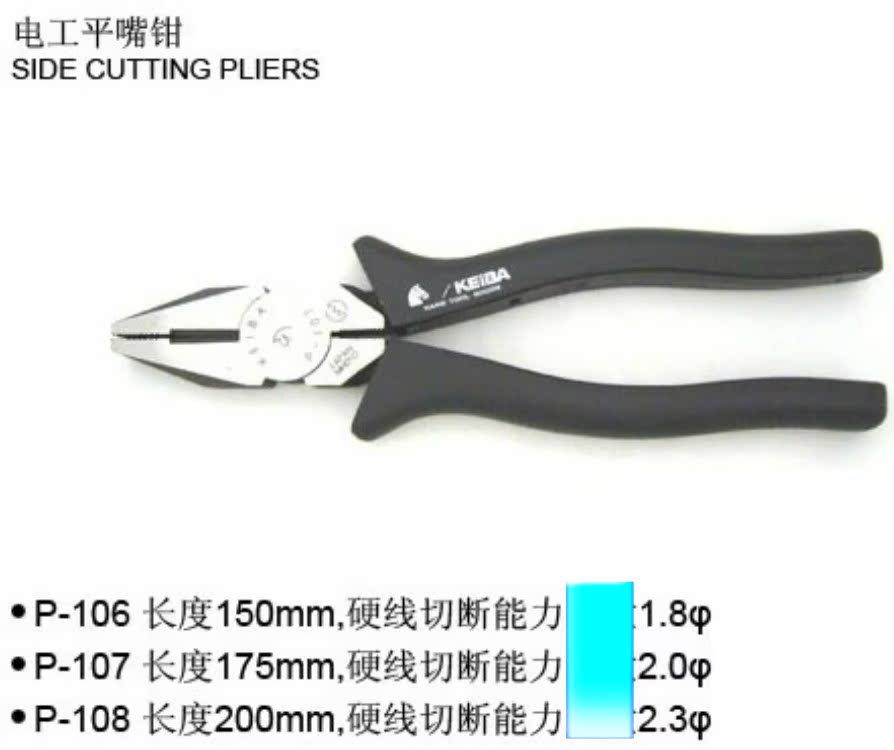切断能力(Cutting Capacity)为:硬线(HardWire)1.8mm,软线(SoftWire)2.3mm
