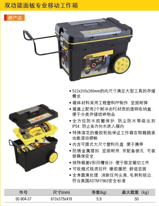 • 商品名称: stanley史丹利双功能面板专业移动工具箱92-904-37C
