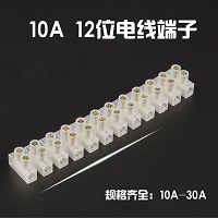 12位10A接线端子,铜皮长度9.68mm 螺丝大小:M3。接线范围0.1-4平方