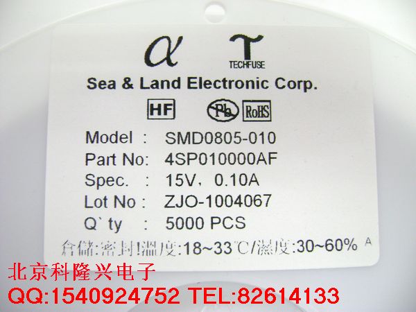 【型号】SMD0805-010