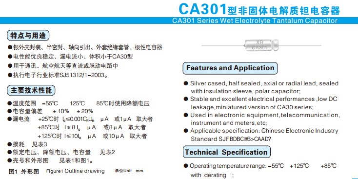 CA301型(160V)非固体电解质钽电容器 容量:1UF-1200UF