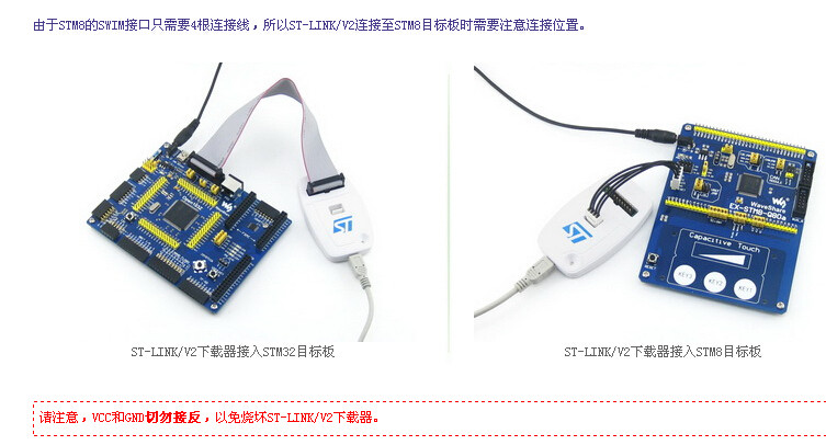 1)、SWIM接口支持1.65~5.5V目标板电压。