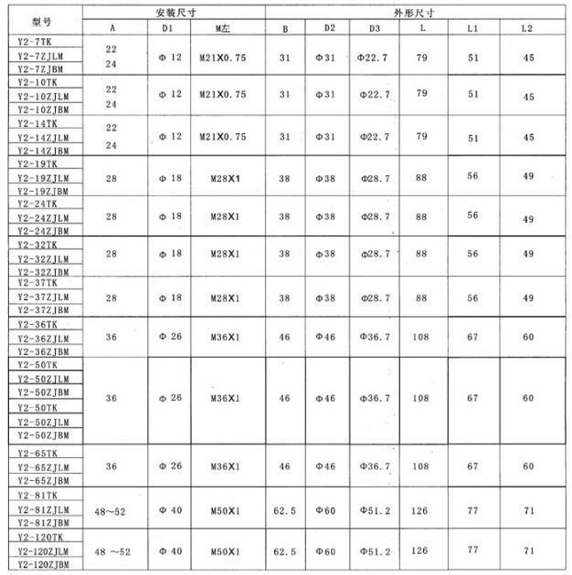 型号 Y2M-10ZJLMYNI