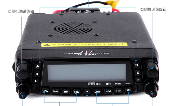 大陆首款四波段的车载电台 50W高功率 29/50/144/430四波段 带UV跨段中转,7个频段接收