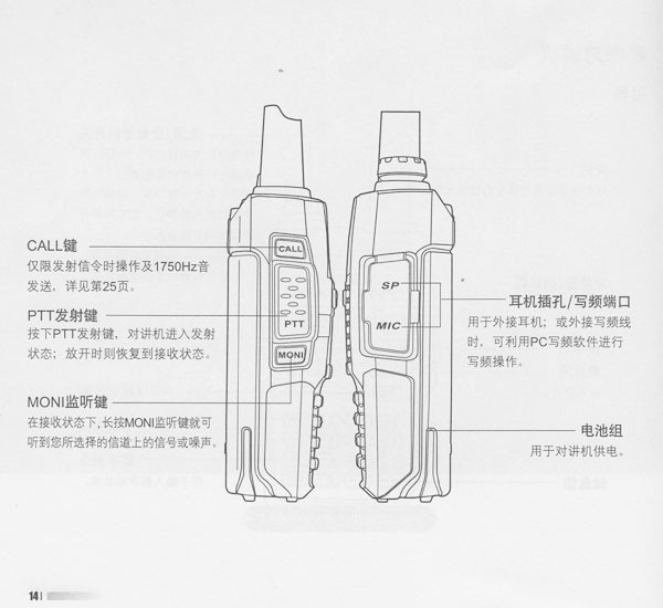 按PTT键+ CALL键开机;
