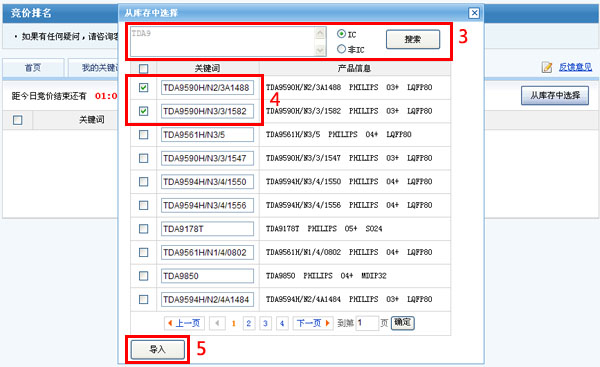 关键词就是采购商搜索产品时最有可能用的名称,例如IC产品的型号和非IC产品的产品名称。关键词代表买家的搜索习惯,不同的买家搜索习惯不一样,所以如果要想效果更好,建议您多选择关键词,且尽量选择搜索量大的关键词。