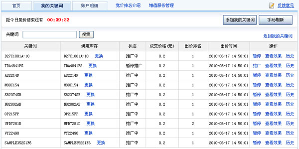 2、在我的关键词页面,可以查看我竞价的关键词.