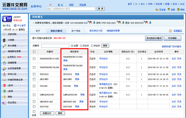4、绑定库存:当采购商使用您竞价成功的关键词搜索时,搜索结果页即展示您绑定的产品信息,以起到推广公司和产品的目的。